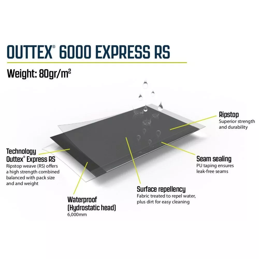 Outtex 6000 Express RS – äusserst strapazierfähiges, hochwertiges Aussenzelt-Material aus reinem Polyester – für jedes Wetter geeignet