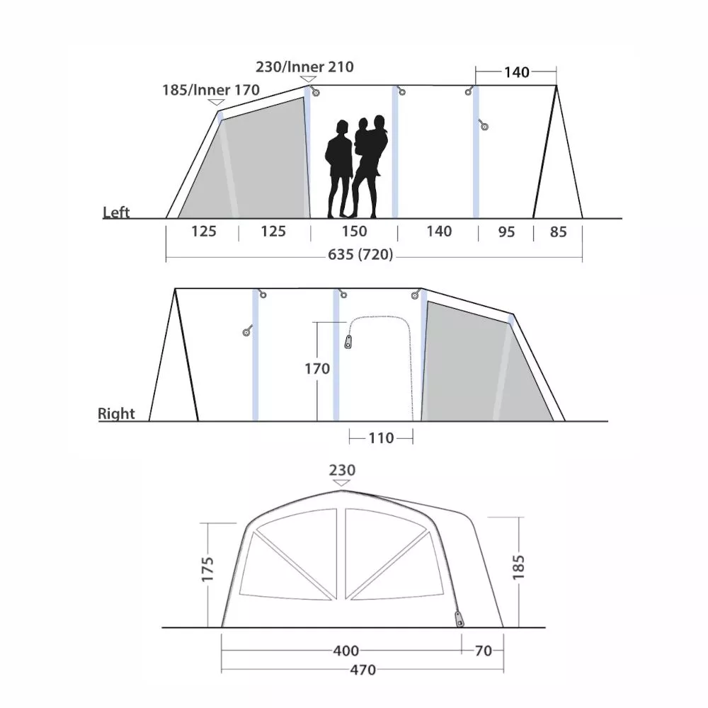 Das aufblasbare Vermont 7 Air mit abgeschrägter Front begeistert als kompaktes Tunnelzelt mit hochwertiger Ausstattung.
