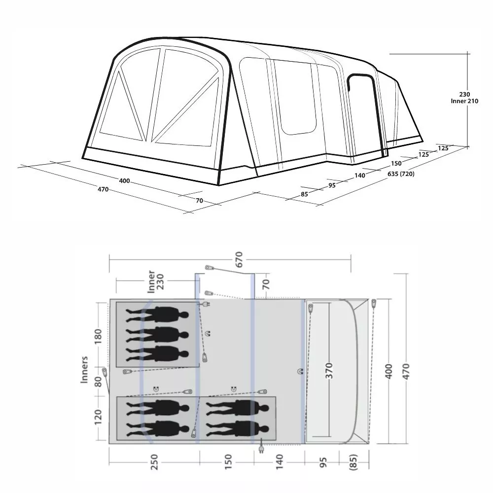 Überzelt: Outtex 6000 Express RS, 100% Polyester / PU-Beschichtung mit Wassersäule: 6.000 mm
