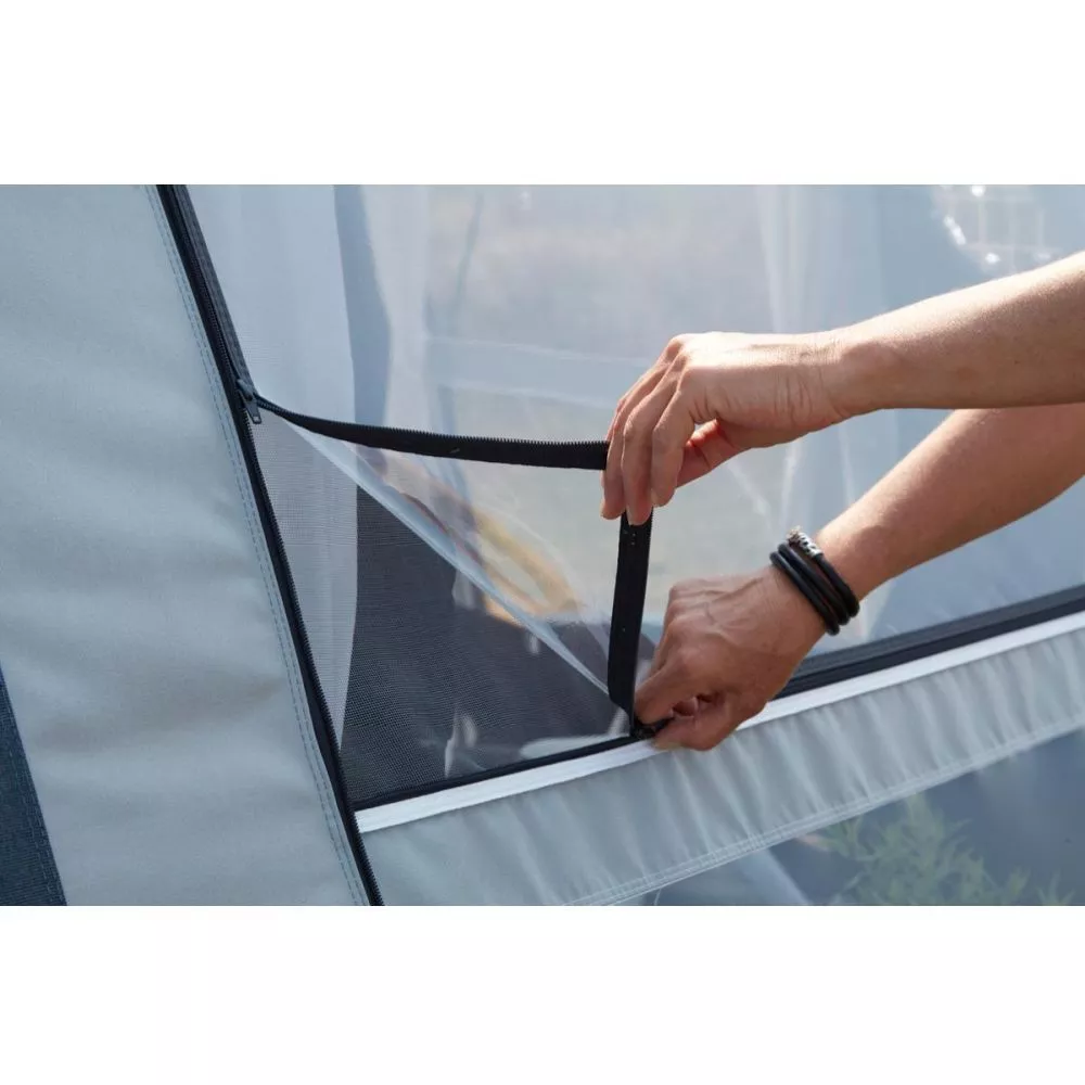 Wer mehr Platz benötigt, kann zudem auf beiden Seiten eine optionale aufblasbare Vorzelt-Erweiterung anbauen. So kannst du deinen Wohnraum sogar verdoppeln! Der Übergang zwischen Vorzelt und Seitenanbau ist durch die Reissverschlussverbindungen nahezu unsichtbar.