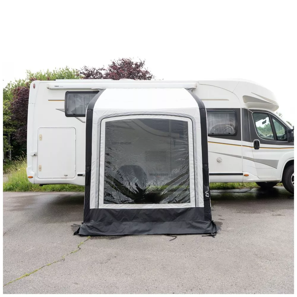 Das aufblasbare Vorzelt Westfield Vega 2.0 mit einer Breite von 200 cm ist ein kompaktes Teilzelt für reisefreudige Wohnmobilfahrer. Durch sein geringes Gewicht und Packmasse ist es ideal für Reise- und Saisoncamping geeignet. Das Luftvorzelt lässt sich an Wohnmobile mit einer Anschlusshöhe von 235-255 cm anbringen.