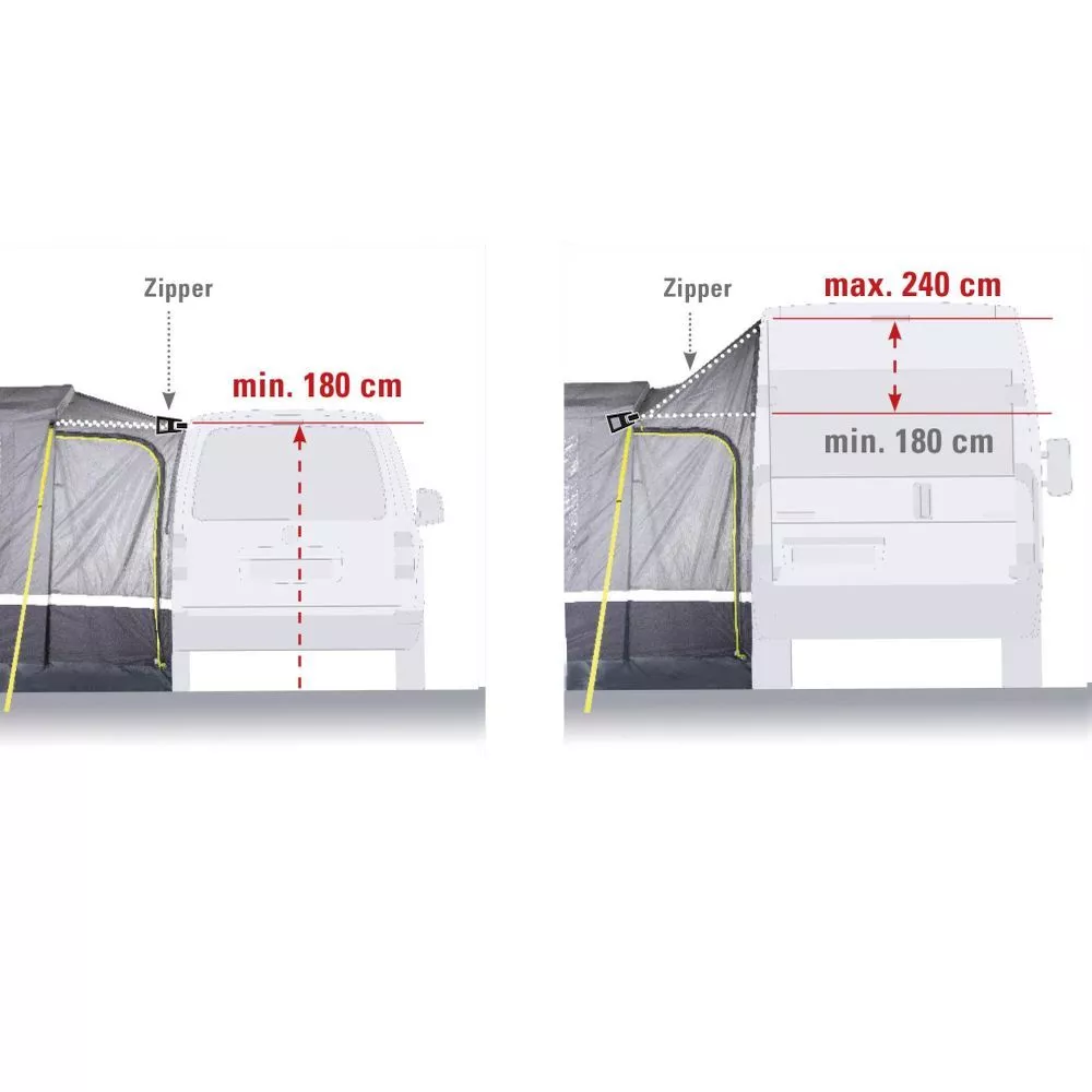 für Campingbusse, Minivans und Reisemobile mit einer Anbauhöhe von 180 – 240 cm