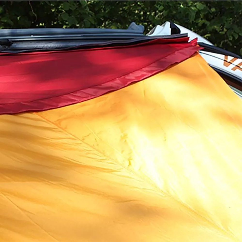 Das verbindbare Sonnensegel sollte, wenn man sich vor Regen schützen möchte, das erste Segel am Fahrzeug/ Wohnwagen/ Dachzelt etc. sein.