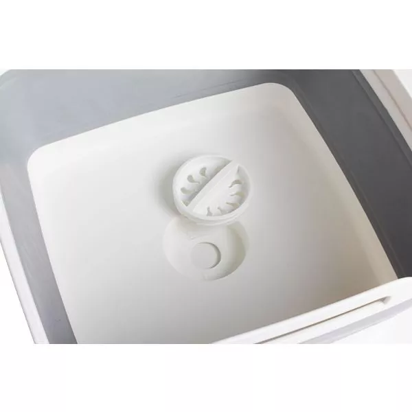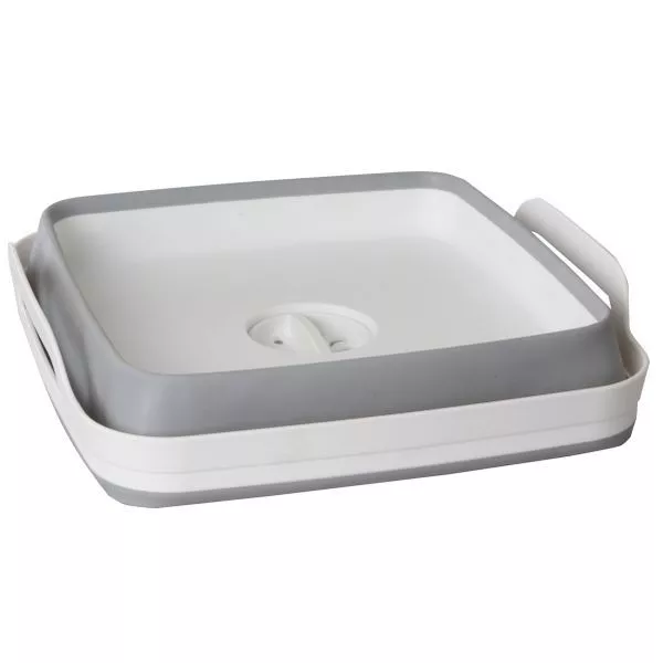 Das grosse viereckige Spülbecken lässt sich mit den integrierten Tragegriffen einfach zum Waschraum und zum Stellplatz zurück transportieren. Über den integrierten, verschliessbaren Bodenablauf kann das Wasser nach getaner Arbeit einfach abgelassen werden. Dank dem Fold-Away-System lässt sich die Schüssel sehr kompakt zusammenfalten und platzsparend aufbewahren.