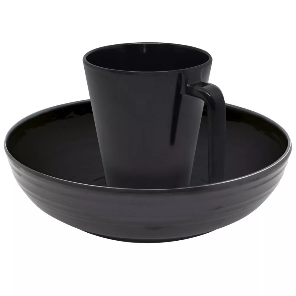Das 16-teilige Campinggeschirr-Set Eurotrail Bahia eignet sich ideal für 4 Personen. Mit unterschiedlichen Tellern und stapelbaren Henkelbechern aus robustem Melamin, bereitet das Set im originellen Design nicht nur unterwegs grosse Freude. Die Unterseite des Geschirrs ist mit einem Antirutschring (Anti-Slip) für einen guten Halt ausgestattet.