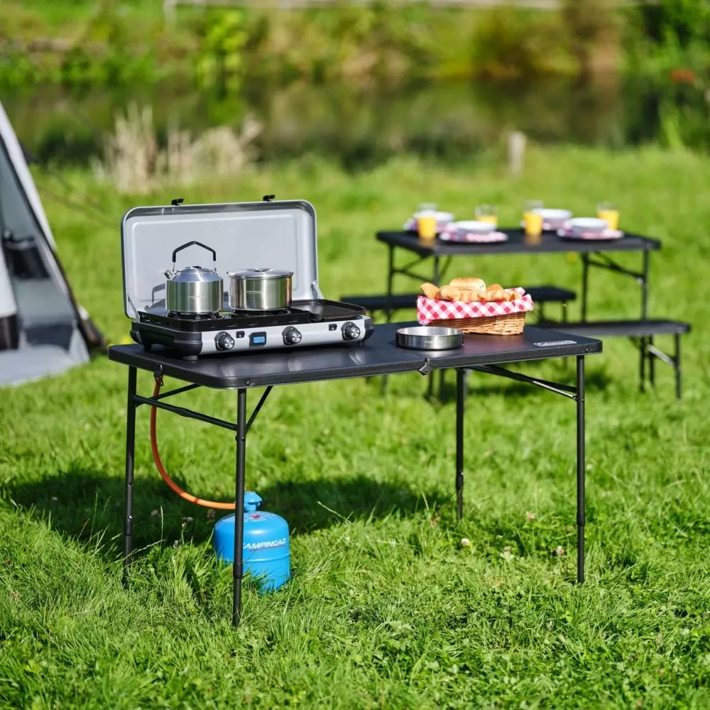 Der stabile Campingtisch Mittel von Coleman bietet einer 4-köpfigen Familie reichlich bequemen Platz. Höhenverstellbare Beine sorgen immer für einen festen Stand. Für lange Haltbarkeit ist die Tischplatte dauerhaft antimikrobiell und mit UV-Schutz beschichtet. Dank der faltbaren Konstruktion kann der Klapptisch leicht und kompakt transportiert werden. Ideal für Camping, Familienausflüge, Garten und Terrasse.