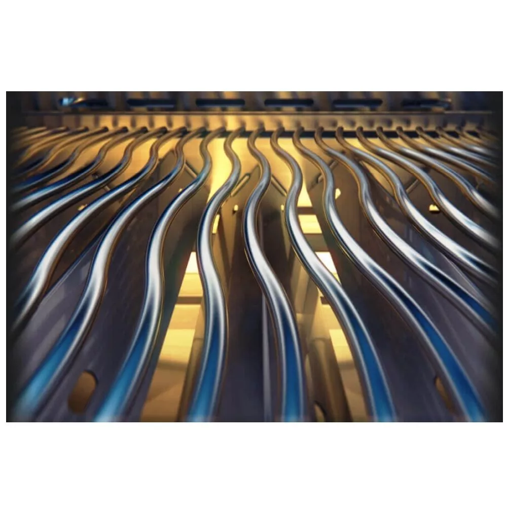 Die Infrarotwärme des Drehspiess-Brenners ist bestens für das Garen bei hoher Hitze und lansames Braten mit dem Drehspiess - WAVE-Stabgrillroste aus Edelstahl (9,5 mm)