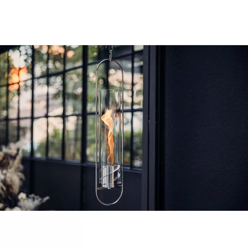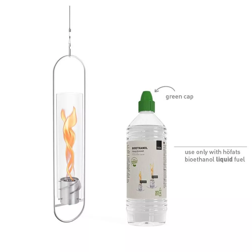 Das höfats SPIN 900 Hängefeuer ist ein echter Hingucker für deinen Garten, Balkon, sowie auch in deinem Wohnzimmer. Das faszinierende Flammenspiel überzeugt durch erstklassige Ästhetik, durchdachte Funktionalität und kompromisslose Sicherheit. Basierend auf natürlichem höfats Bioethanol verwandelt sich die schlicht anmutende SPIN mit dem Aufsetzen des Glaszylinders aus hitzebeständigem Borosilikatglas sogleich in einen spektakulären Flammenwirbel. Der technologisch hochentwickelte Bio-Burner nimmt das flüssige höfats Bioethanol in seinem Inneren auf und lässt die markante Flamme wie eine Skulptur emporsteigen. Standfest, geruchlos und rauchfrei lässt sich die Wärme des Feuerspektakels geniessen. Dabei hast du alles unter Kontrolle, denn mit dem Eco-Ring kannst du die Brenndauer verdoppeln und sollte der Abend vor dem Erlöschen der Flamme zu Ende gehen, kann das Feuer mit dem beigelegten Löschdeckel vollständig und bedenkenlos erstickt werden. SPIN hinterlässt einen nachhaltigen Eindruck – als Tischfeuer, auf dem Boden stehend, als Gartenfackel und auch als schwebendes Hängefeuer. Das zahlreich prämierte Designprodukt schenkt dir kreativen Freiraum und dank umfassendem Zubehörsortiment findest du für jeden Anlass den passenden Flammenwirbel.