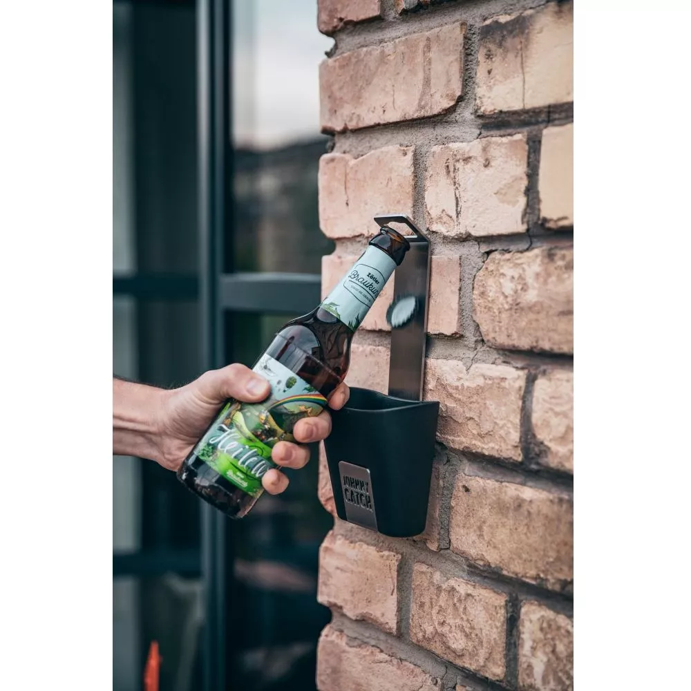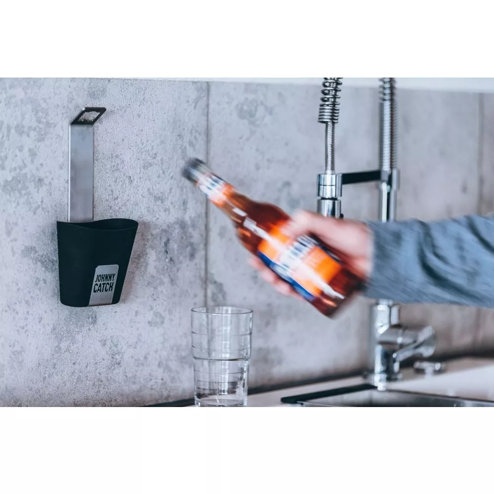 So fangsicher kann der Höfats Johnny Catch Cup Wand-Flaschenöffner sein! Dieses unverzichtbare Party-Tool aus gebürstetem Edelstahl und Soft-Touch Auffangbecher beendet den freien Fall von Kronkorken! Der Höfats Johnny Catch Cup ist immer zur Stelle und fangbereit.