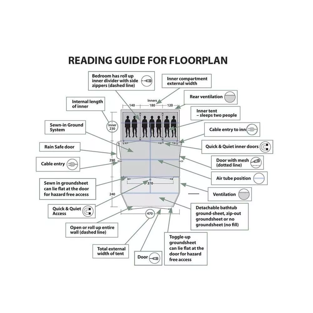 Überzelt: Outtex 1500 Pro Silver (100% Polyester) mit versiegelten Nähten