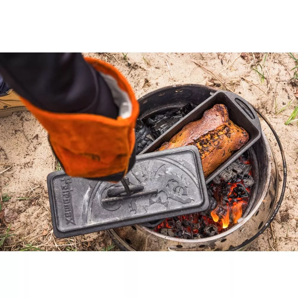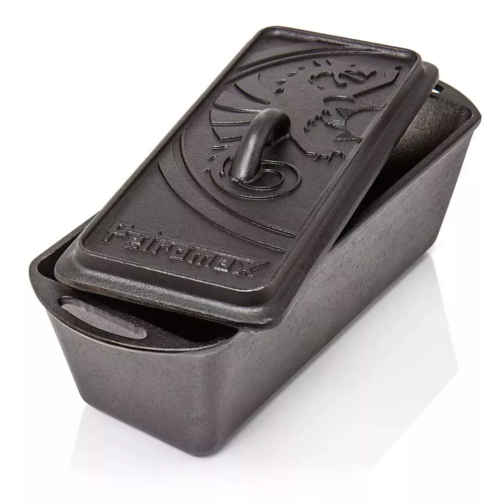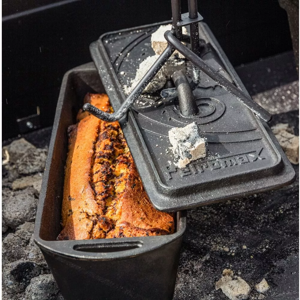 Die Petromax Kastenform ist perfekt für Brot, Kuchen, Auflauf und Co. geeignet. Der Deckel der gusseisernen Formen lässt sich in der outdoor-Küche mit Glut oder Briketts bestücken, sodass eine hervorragende Rundumwärme entsteht, wie bei einem Feuertopf. Im Backofen funktioniert die Guss-Kastenform als Bräter oder für leckeren Nachtisch.