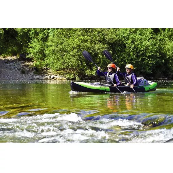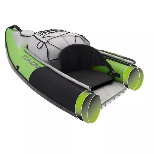 Das Kajak Sevylor Yukon überzeugt mit höchstem Fahrkomfort und praktischer Handhabung. Die Form gewährt guten Schutz vor eindringendem Wasser und sowohl Sitz als auch Fussstütze können individuell für beste Passform verstellt werden. Im grosszügigen Stauraum lässt sich auch umfangreiches Equipment transportieren. Das Kajak Yukon aus dem Hause Sevylor hat entlüftet ein kompaktes Packmass und lässt sich im innovativen Packsack mit Schulterriemen (im Lieferumfang enthalten) einfach transportieren. Ob für Küstenexpeditionen oder Flusswanderungen, ob für einen oder mehrere Tage – das 2-Personen-Kajak Sevylor Yukon ist stets ein verlässliches und robustes Outdoor-Kajak.