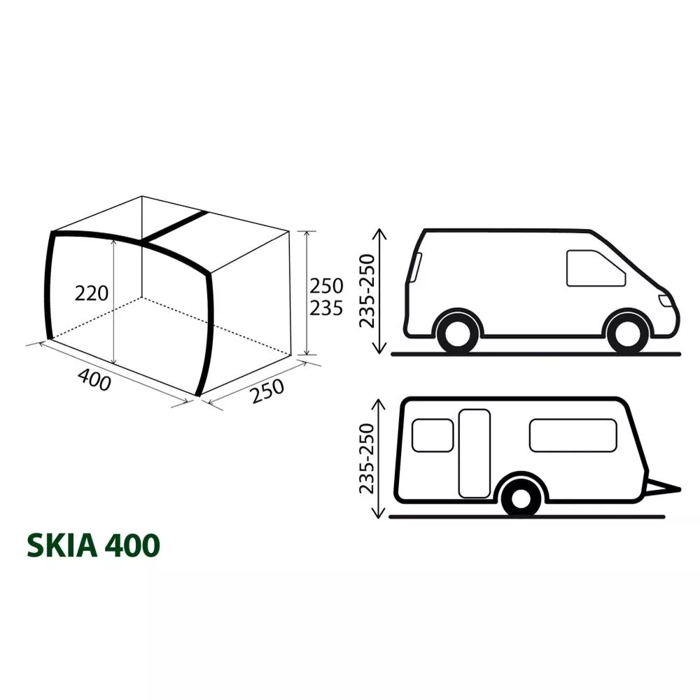 - für Caravan, Wohnmobil und Kastenwagen mit einer Anschlusshöhe von 235 – 250 cm
