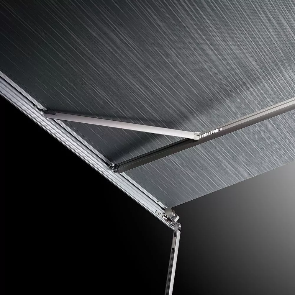 robuste Gelenkarme mit Spannarmen stellen sicher, dass das Markisentuch perfekt gespannt ist - verbessern die Windbeständigkeit