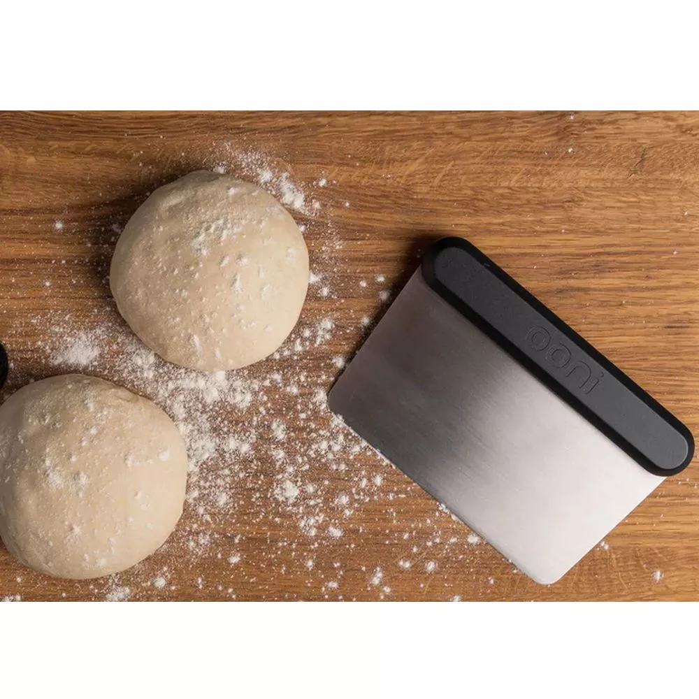 Das Verarbeiten von Pizzateig kann eine klebrige Angelegenheit sein aber mit dem Ooni Teigschaber kannst du den Teig mühelos auf der Arbeitsfläche wenden und präzise portionieren. Dank der stabilen Edelstahlkante und dem handlichen Griff kannst du mit dem Teigschaber den Pizzateig teilen, glätten oder abkratzen.