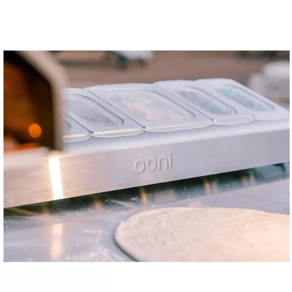 Bereite deine Pizzapartys ganz einfach mit dem Ooni Pizzabelag-Container (mittelgross) vor. Diese Behälter passen perfekt zur Ooni Pizzabelag-Station, die speziell von Ooni als Ergänzung zu den Ooni Modultischen entworfen wurde. Bringe etwas Pep in deine Aussenküche und gestalte die Pizzazubereitung kinderleicht. Edelstahlbehälter mit passendem Deckel. Perfekt für Saucen, Fleisch, Salate oder Käse.