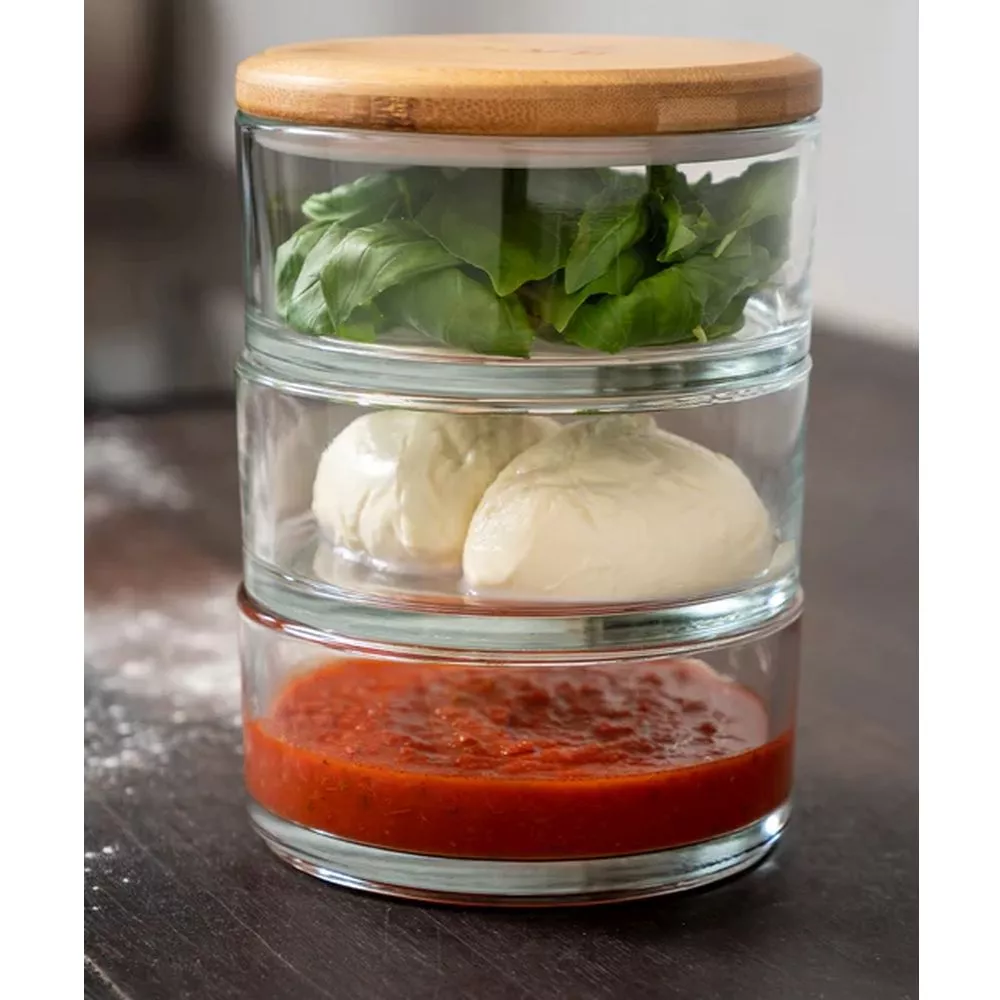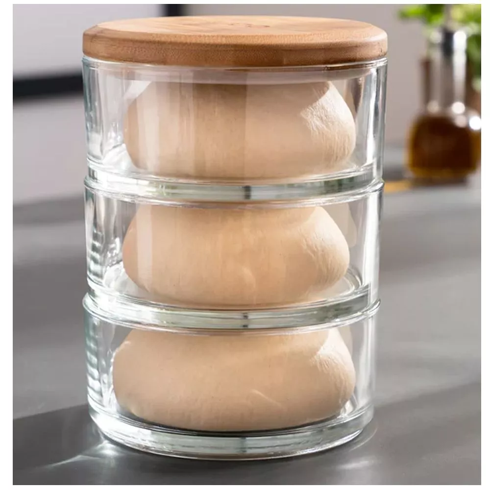 Du sucht eine stilvolle Lösung für die Teigzubereitung und Pizza-Zutatenlagerung? Dann ist das Ooni Stapelgefäss-Set genau das richtge Zubehör für dich. Mit diesem Set gehören zusammengeklebte Teigbällchen der Vergangenheit an. Dank der Glaswand kannst du du deinem Teig beim Geh-Prozess beobachten. Mit der abnehmbaren luftdichten Silikondichtung und dem nachhaltigen Bambusdeckel ist es ein Kinderspiel, deine Zutaten für eine grossartige Pizza vorzubereiten, zu stapeln und frisch zu halten.