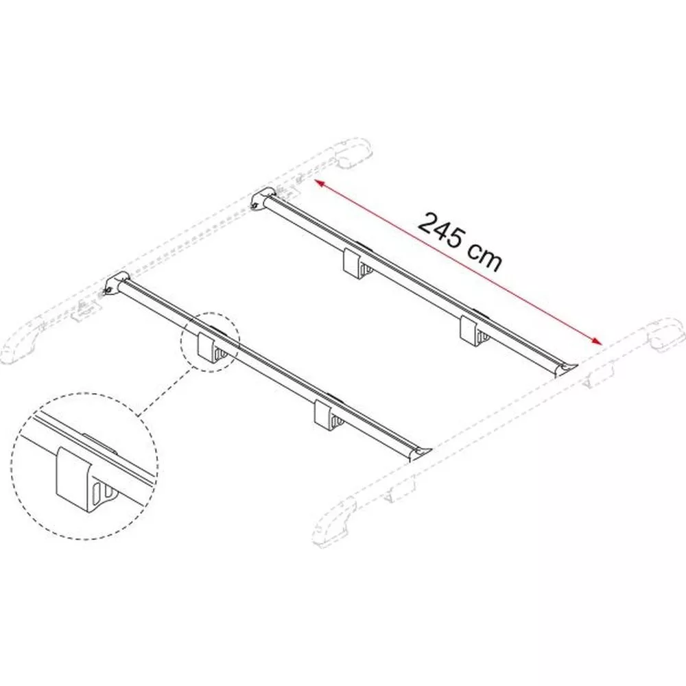 Die Tragestangen Fixing Bar Rail von Fiamma sind aus eloxiertem Aluminium. In Verbindung mit dem Roof Rail schaffst d dir eine formschöne Dachreling, ohne am Fahrzeug bohren zu müssen. Die Tragestangen sind kürzbar.