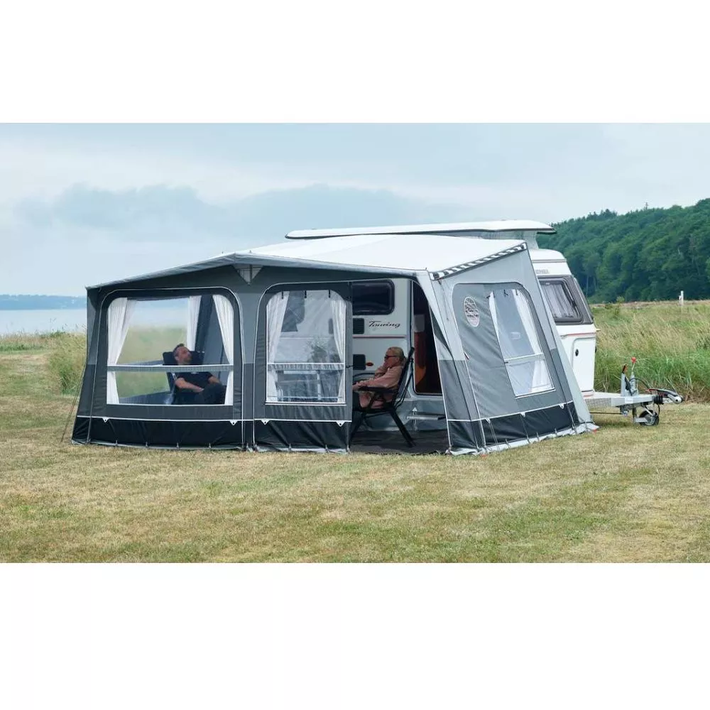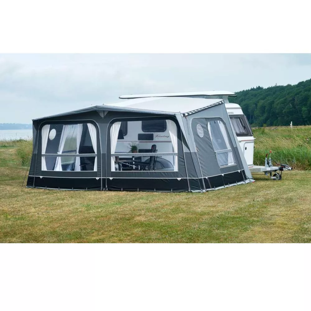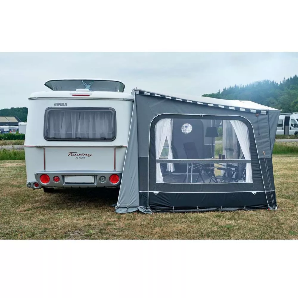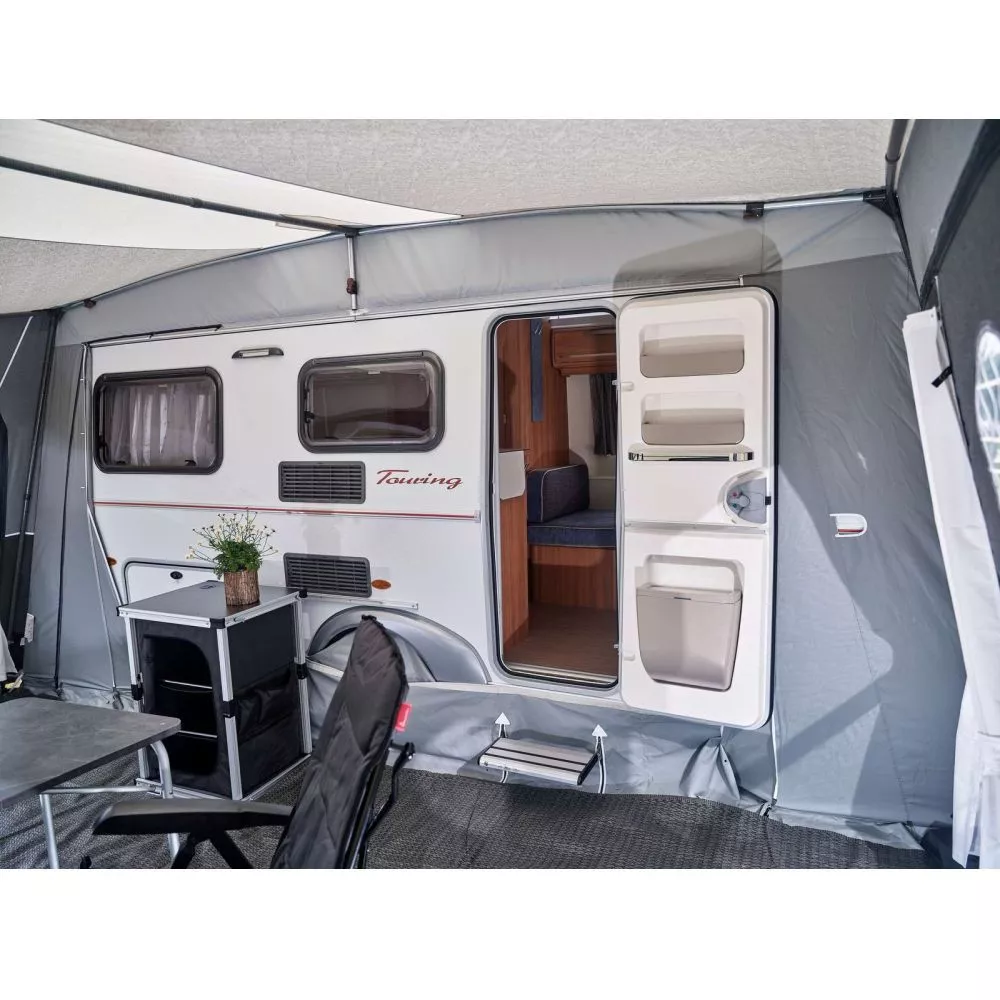 Mit einer Grösse von 500 x 250 cm (BxT) ist genügend Platz, um auch mit der ganzen Familie in den Urlaub fahren zu können. Das grosse Wohnwagenvorzelt ist so konstruiert, dass sich die Wohnwagentür deines Eriba Touring komplett öffnen lässt. So kannst du die Vorzeltgrösse komplett und ohne Einschränkungen ideal nutzen. Es ist sogar genügend Platz, um eine Essecke mit Campingtisch und Campingstühlen oder sogar eine praktische Campingküche aufzubauen.