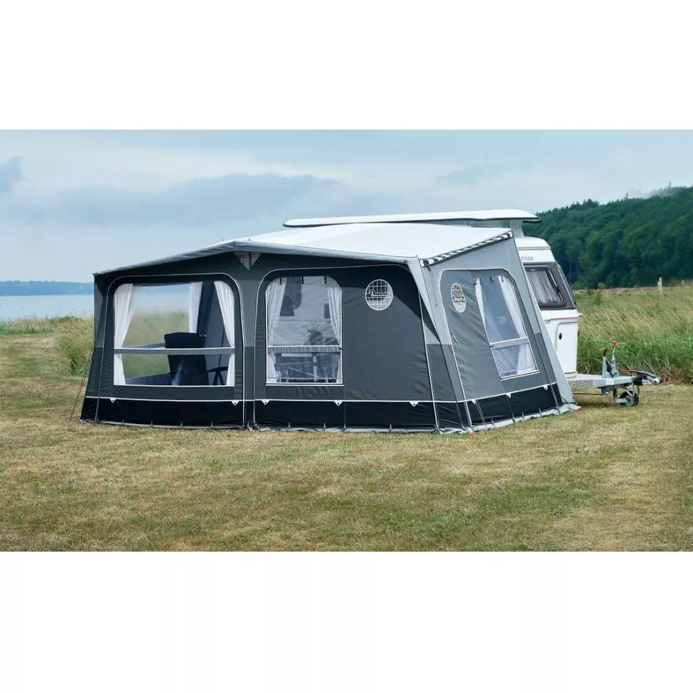 Das integrierte Andruckpolster im Dach dichtet perfekt zwischen Vorzelt und Wohnwagen ab und herabtropfendes Wasser wird seitlich abgeleitet. Die einzelnen Front- und Seitenteile können über Kreuz untereinander getauscht werden. So hast du selbst die Wahl, ob du vielleicht einen Eckeingang oder ein grosses Panoramafenster an der Front und Tür haben möchtest. Dir sind hier keine Grenzen gesetzt!