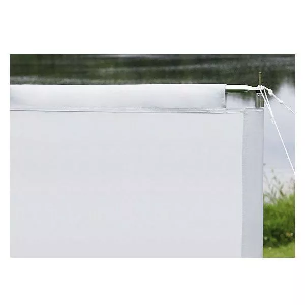 die waagrechten Spannstäbe werden durch Hohlsäume geführt und verleihen dem Windschutz Stabilität