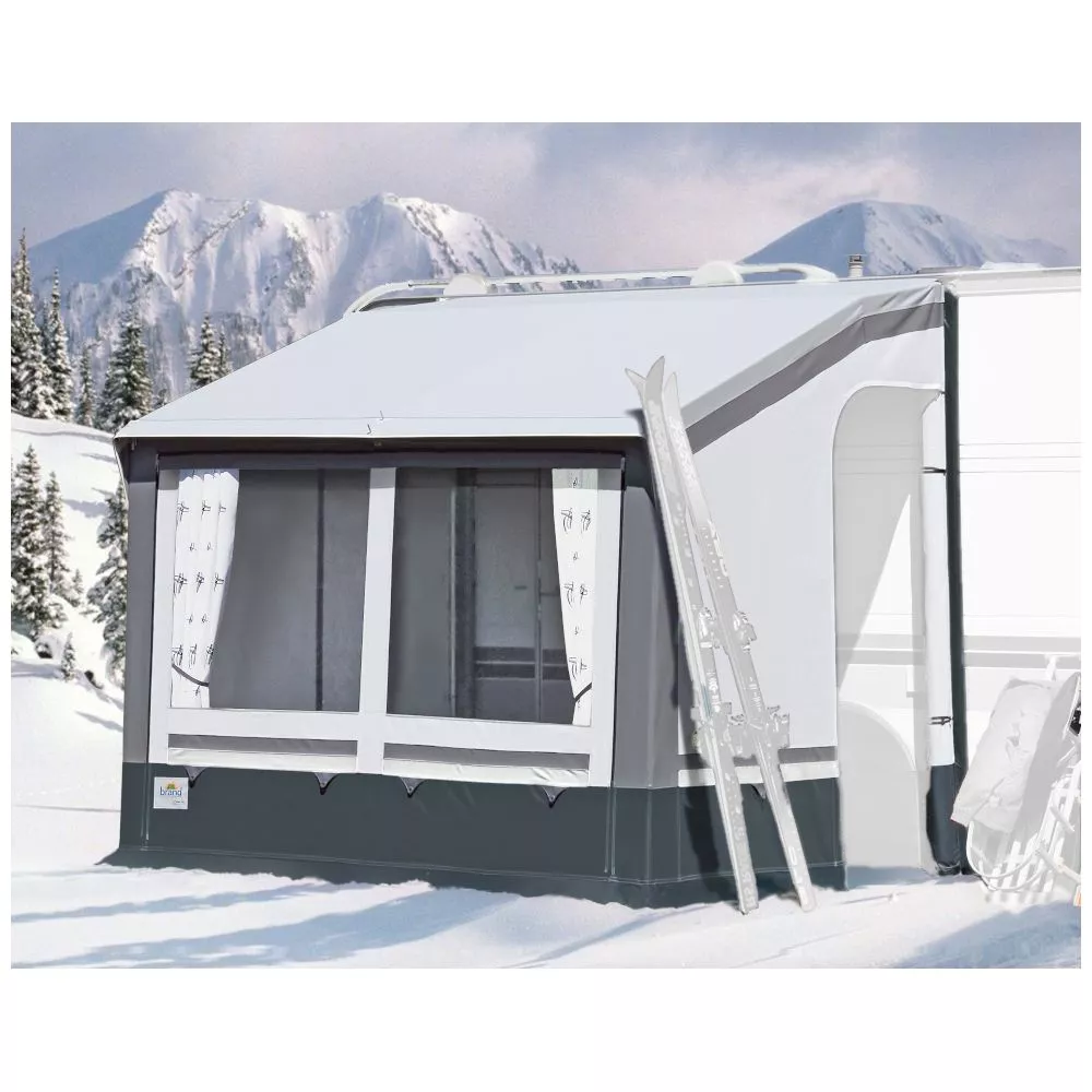 Mit dem Wohnwagen-Vorzelt brand Pamir S bist du fürs Wintercamping bestens gerüstet, selbst in alpinen Regionen.