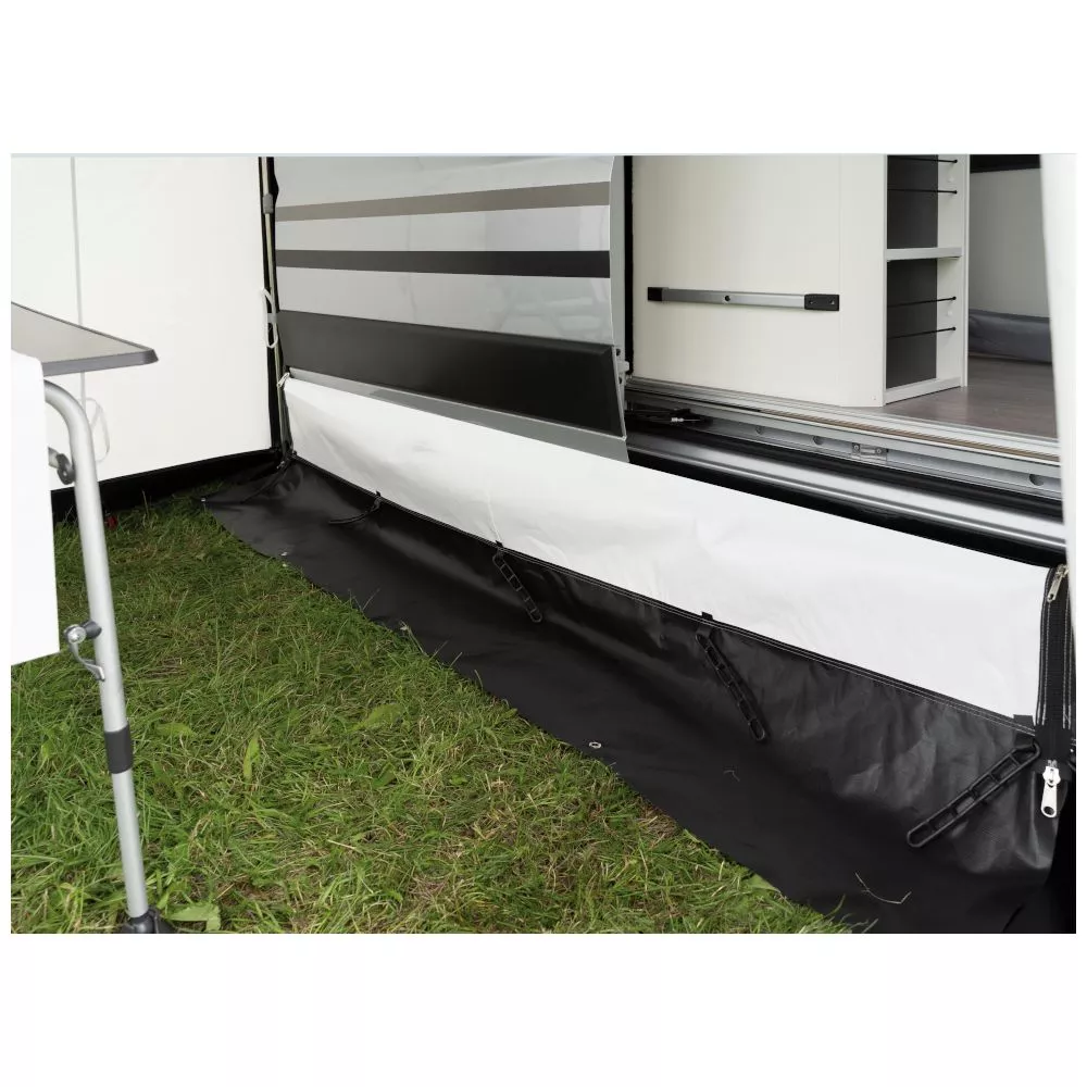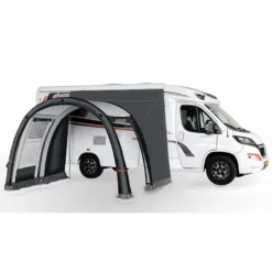 Dank der „stand alone“ Bauweise inklusive Rückwand bleibt dein Blizzard Winterzelt auch ohne Fahrzeuganschluss stabil stehen. Das robuste Stahlgestänge sorgt dabei auch an Schlechtwetter-Tagen für einen guten Stand. Zur Verbindung mit deinem Wohnmobil dient die am Teilvorzelt angebrachte Überwurflasche. Über die beiden gegenüberliegenden Rundbogen-Eingänge gelangst du schnell und einfach ins Zelt. Darüber hinaus ist die Front mit getönten Fenstern und einem Air Vent Fenster ausgestattet, wodurch dir ein schöner Panoramablick in die Natur geboten wird.