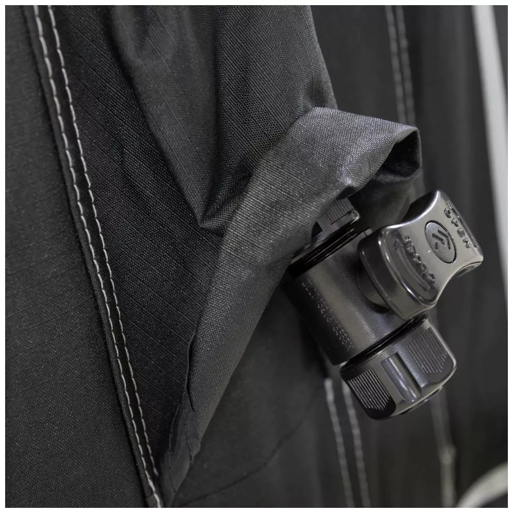 Das Aufblaszelt Dometic Rally Air Tour ist ebenso Sabre-Link kompatibel. Dadurch können an den vorderen und mittleren Luftschläuchen bis zu 3 Lampen aufgehängt werden, die für reichlich Licht im Vorzeltinneren sorgen. Mit dem sogenannten Limpet-System ist das Luftvorzelt ebenso ausgestattet. Über die vorgestanzten Löcher in der Zeltrückwand wird das Vorzelt mittels optional erhältlicher Limpet Saugnäpfe dicht mit der Fahrzeugwand verbunden. Das verhindert ein Flattern der Rückwand und das Eindringen von Zugluft.